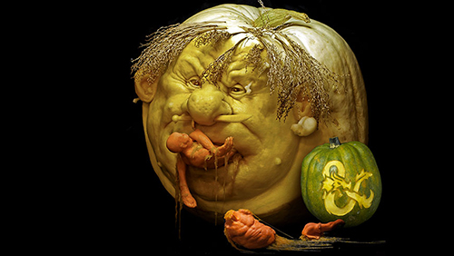 As an added bonus, we wanted to share the following preview—an early look at Dragon+’s October cover (releasing soon). Yes, that’s a real carved pumpkin, also involved in a game of stuff-stuff. Our thanks to artist Ray Villafane—founder of Villafane Studios and creator of next issue’s cover!