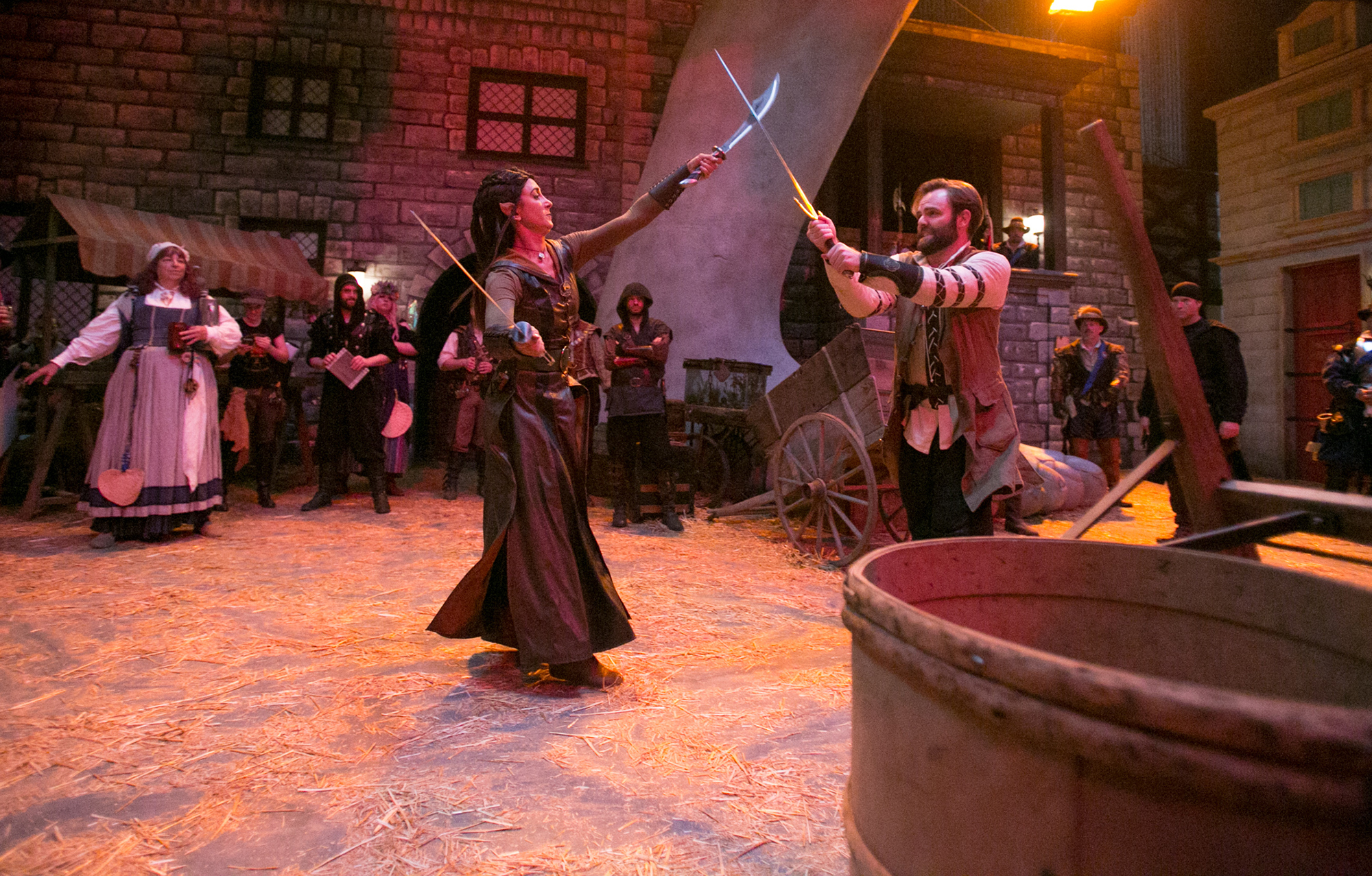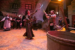 | Swordplay on the streets of Waterdeep | A stroll past the Walking Statues | A city assembled in good cheer | Liveplay on the main stage |
