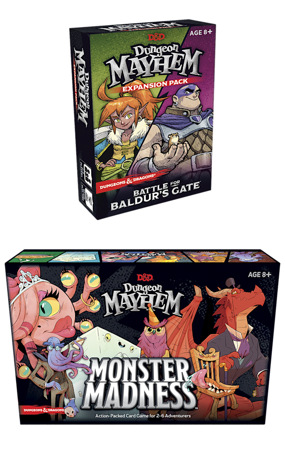 In Dungeon Mayhem: Monster Madness, you play as one of six epic D&D monsters, each with their own way to charm, crush, disintegrate, and devour their foes. Pit these cunning creatures against any other Dungeon Mayhem deck, and store all your cards in this monster-sized box. Then select your favorite and prepare for mayhem. Plus, you can also enjoy bringing more adventurers into the fold with the addition of rules to include up to 6 players!